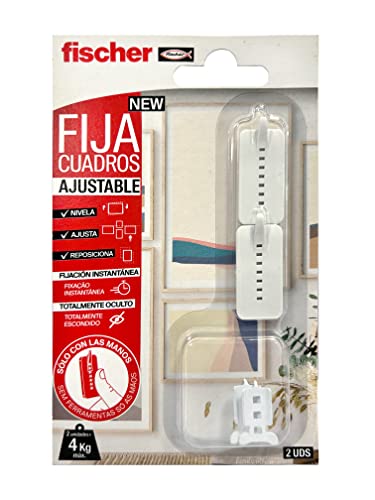 fischer - Lot de 2 tableaux fixes réglables - Pour accrocher des tableaux sans clous ni trous - Réglable jusqu'à 1,5 cm - Jusqu'à 4 kg avec 2 crochets - Idéal pour le plâtre, les cloisons sèches et le