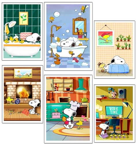 DKORARTE Lot de 6 tableaux modernes en bois pour décoration de salon, chambre, chambre, Snoopy avec crochets métalliques (2 x 38 x 29 cm ; 4 x 29 x 20 cm)