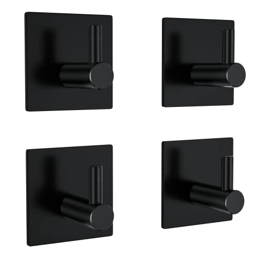 Empava Lot de 4 crochets muraux adhésifs pour peignoirs, manteaux, crochets de suspension sans dommage avec rubans adhésifs en acier inoxydable pour salle de bain, chambre à coucher, cuisine, noir