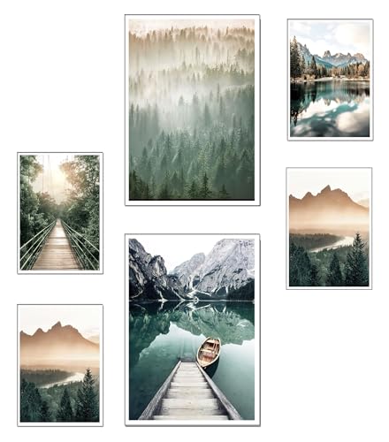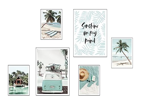 DKORARTE Lot de 6 tableaux en bois pour décoration de salon, chambre, chambre, paysage, plage, nature avec crochets métalliques (2 x 38 x 29 cm ; 4 x 29 x 20 cm)