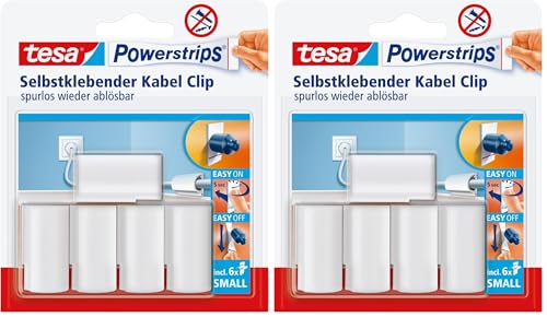 tesa Powerstrips Crochets de Fixation Auto-Adhésifs Pour Câbles – Pour un Montage Sans Perçage et le Rangement de Câbles jusqu'à 8 mm de Diamètre – Repositionnables – Sans Traces (Lot de 2)