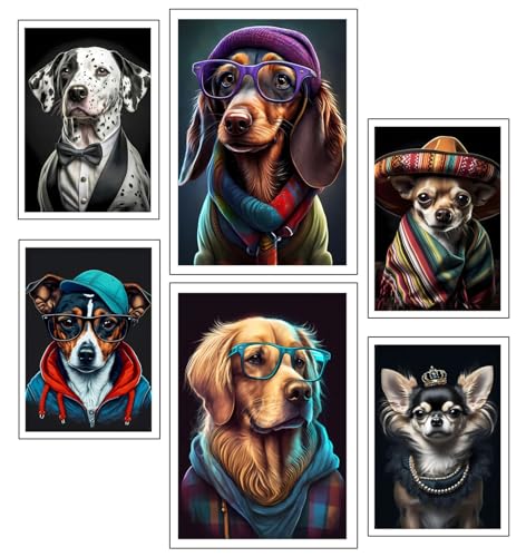 DKORARTE Lot de 6 tableaux avec base en bois pour décoration de salon modernes, chambres à coucher, chambre à coucher, nature et animaux avec crochets métalliques (38 x 29 cm chaque tableau)