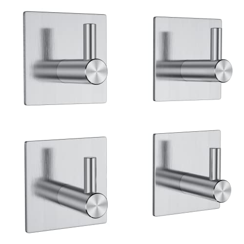 Empava BAS01 Lot de 4 crochets muraux adhésifs pour serviettes, peignoirs, manteaux, crochets de suspension sans dommages, avec rubans adhésifs en acier inoxydable, support robuste pour salle de bain,