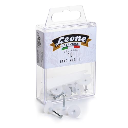 Leone Dell'Era 10 crochets moyens pour accrocher des tableaux avec clous en acier trempé – Boîte à suspendre – Fabriqué en Italie – Blanc