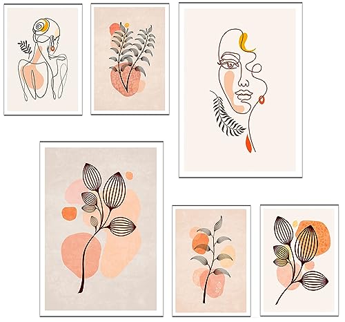 DKORARTE Bestpricepictures Lot de 6 tableaux modernes en bois pour décoration de salon ou chambre abstraite florale avec crochets métalliques (2 x 38 x 29 cm ; 4 x 29 x 20 cm)