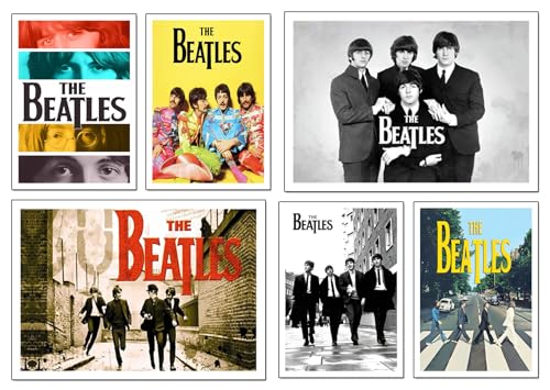 DKORARTE Lot de 6 tableaux avec base en bois pour décoration de salon moderne, chambre à coucher, chambre Les Beatles avec crochets métalliques (2 x 38 x 29 cm ; 4 x 29 x 20 cm)