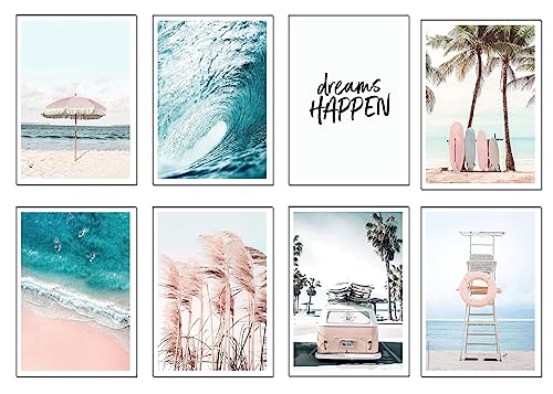 DKORARTE Lot de 8 tableaux avec base en bois pour décoration de salon, chambre, chambre, paysage, plage, nature avec crochets métalliques (29 x 20 cm chaque tableau)