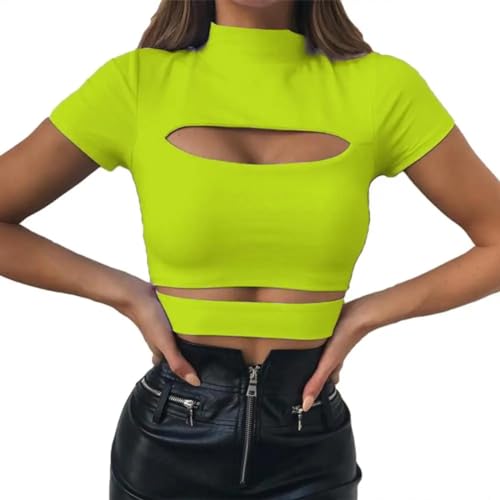 YUEZHAN Débardeurs Tops Évider Solide Débardeur Col Roulé Femmes T-Shirt Gilet pour Crop Tops Réservoirs Cropped Tricoté Tee Tops S Fluorescentgreen