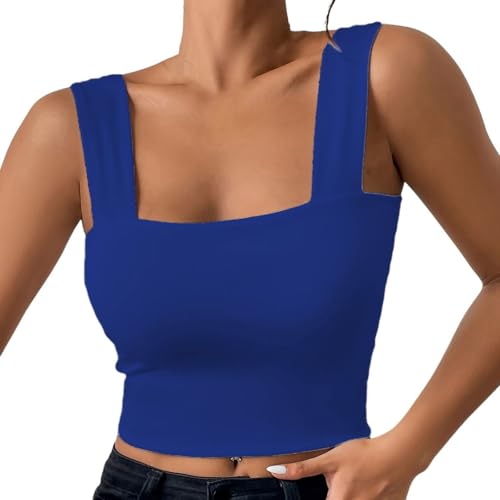Débardeur Femme sans Manches, Caraco Femme Sexy Col Carré Crop Tank Tops Camisole Bretelles Larges Moulants Coupe Ajustée Slim Fit Haut D'été Couleur Unie Décontracté Gilet Chic Unique