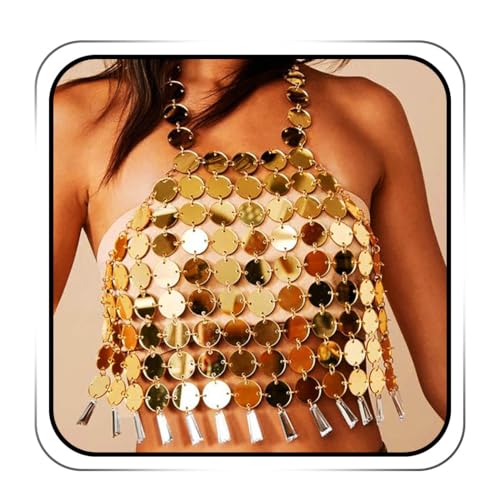 IYOU Boho Chaîne de Corps Paillettes Or Soutien-gorge Chaînes Top Cristal Pampilles Chaînes Poitrine Crop Tops Plage Fête Soutien-gorge Accessoires pour Femmes
