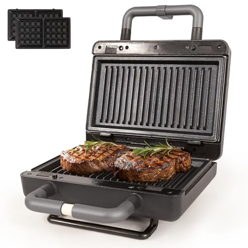 Gaufrier multifonction PRUMYA - Croque Monsieur Gaufrier et Grill 6 en 1 - Beignets Madeleine - 750W