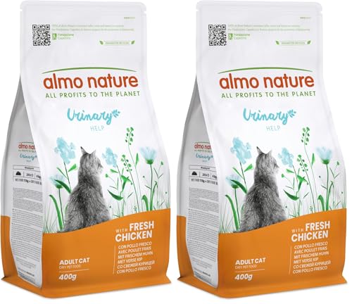 Almo Nature Urinary Help - Croquettes pour Chat au Poulet Frais - Soutien au Système Urinaire avec Glucosamine et Niveaux Réduits de Magnésium, Calcium et Phosphore - Sac de 400g (Lot de 2)