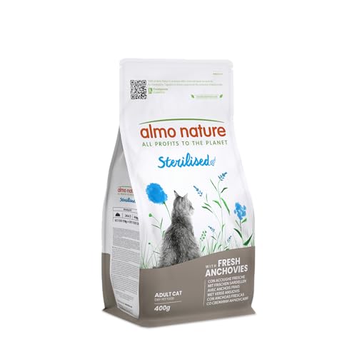 Almo Nature Sterilised - Croquettes pour Chat Stérilisé aux Anchois Frais - À Faible Teneur en Magnésium et avec des Fibres pour Le Contrôle du Poids - Sac de 400g