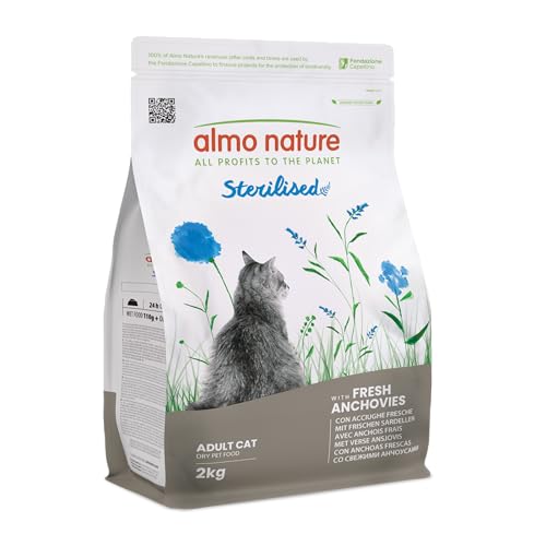 Almo Nature Sterilised - Croquettes pour Chat Stérilisé aux Anchois Frais - À Faible Teneur en Magnésium et avec des Fibres pour Le Contrôle du Poids - Sac de 2kg