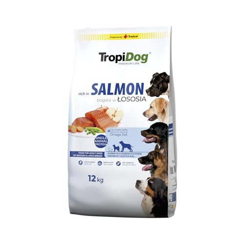Croquettes pour Chien Premium Riche en Saumon avec du Riz pour Adultes de Races Moyennes et Grandes 12kg