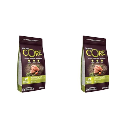 Wellness CORE Low Fat, Croquettes pour Chien de Grande et Moyenne Taille, Faible en Graisses, Contrôle du Poids, 100% Naturelles et Viande Fraiche, Dinde, 1.8 kg (Lot de 2)