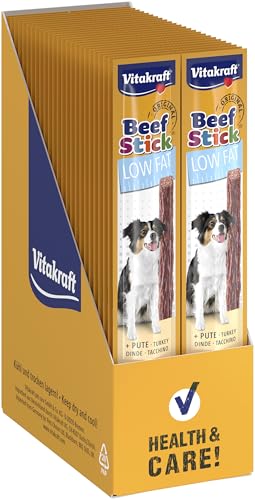 VITAKRAFT- Beef Stick Low Fat, Friandise pour Chien, Stick De Viande À La Dinde, Friandise D'Entraînement pour Chiens en Surpoids, sans Sucres Ajoutés - Lot de 50