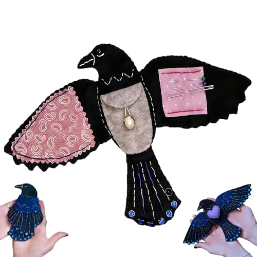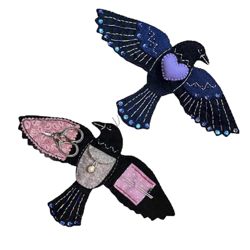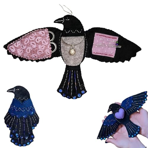 Raven's Keepsake – Guardian of Stitches, Luna The Crow Étui à couture, organisateur de kit de couture en feutre fait à la main, pour fils, aiguilles, ciseaux, pour les amateurs d'artisanat (1PC)