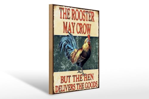Femer Plaque en bois avec inscription en allemand « The rooster may crow but the hen delivers » - 20 x 30 cm