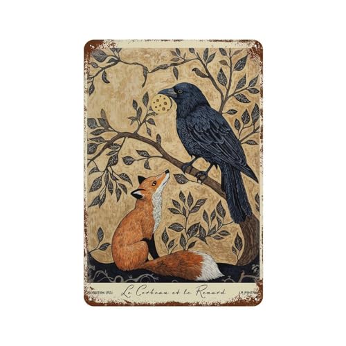 sinyumoney The Crow And The Fox Animal Fables Décoration Murale Imperméable En Fer Pour Bar, Café, Salle De Jeux, Garage Familial, Poster Mural15.7 x11.8