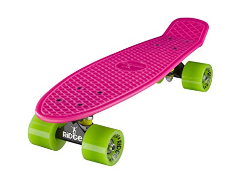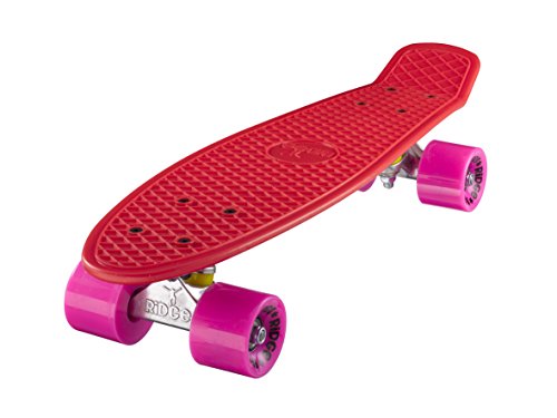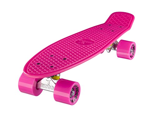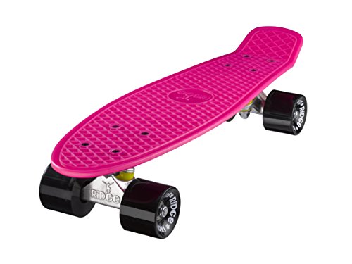 Ridge Skateboards 22" Original Mini Cruiser Skate 55cm Skateboard Planche a Roulettes Complète en 90 couleurs Noir/Rose