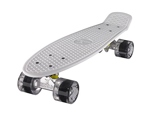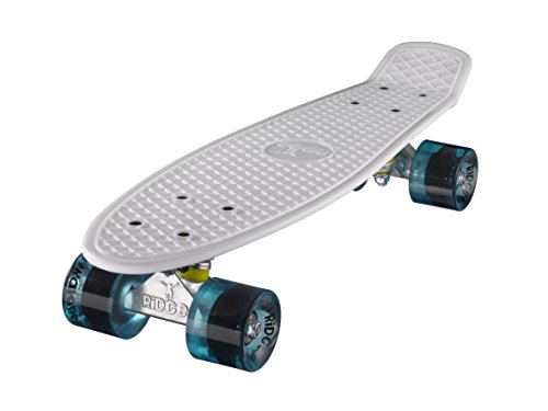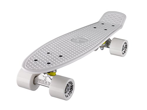 Ridge Skateboards 22" Original Mini Cruiser Skate 55cm Skateboard Planche a Roulettes Complète en 90 couleurs Blanc/Transparent