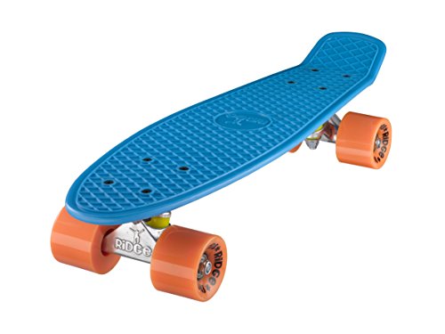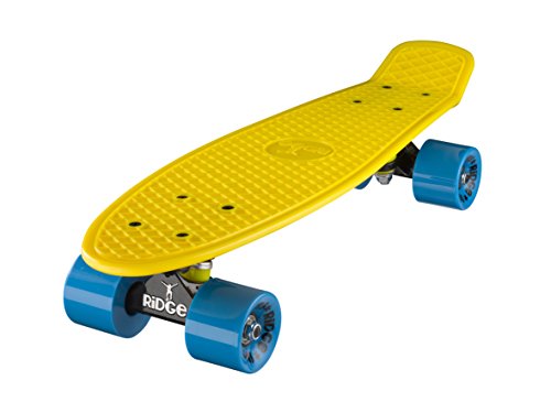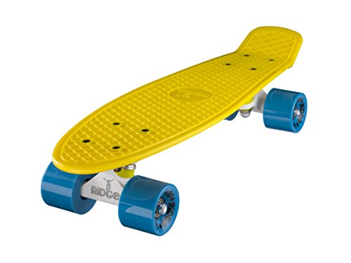 Ridge Skateboards 22" Original Mini Cruiser Skate 55cm Skateboard Planche a Roulettes Complète en 90 couleurs Bleu/Jaune