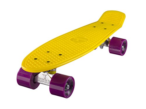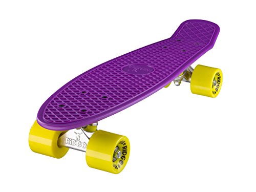 Ridge Skateboards 22" Original Mini Cruiser Skate 55cm Skateboard Planche a Roulettes Complète en 90 couleurs Violet/Jaune