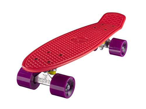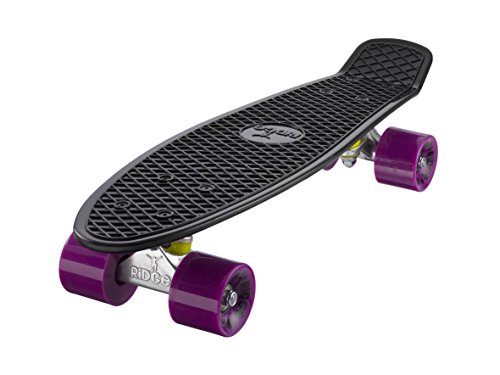 Ridge Skateboards 22" Original Mini Cruiser Skate 55cm Skateboard Planche a Roulettes Complète en 90 couleurs Noir/Pourpre