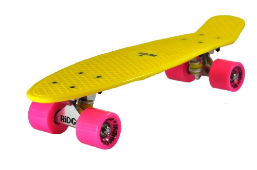 Ridge Skateboards 22" Original Mini Cruiser Skate 55cm Skateboard Planche a Roulettes Complète en 90 couleurs Jaune/Bleu/Blanc