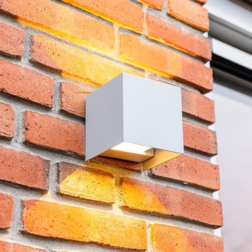 Applique murale LED Up & Down Cube - IP54 Applique murale - Blanc - 6 Watt 660 lumens - Dimmable - Aluminium - Lampe d'extérieur - Faisceau lumineux ajustable 5-100° - Lumière blanche chaude 3000K