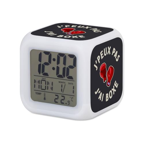 Fabulous Réveil Cube Lumineux Noir - J'Peux Pas J'Ai Boxe Boxeur Sport Combat - 7,8 x 7,8 x 7,8 cm - Retro Éclairage Multicolore LED