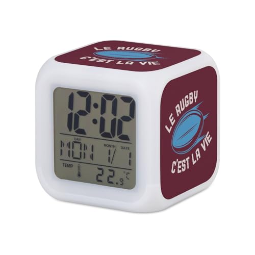 Fabulous Réveil Cube Lumineux Rouge - Le Rugby C'est la Vie Sport XV Ballon Stade France - 7,8 x 7,8 x 7,8 cm - Retro Éclairage Multicolore LED