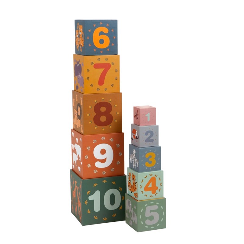 small foot Cubes à empiler «Safari», jouet de motricité, trier, empiler et compter, pour enfants dès 1 an, 11957