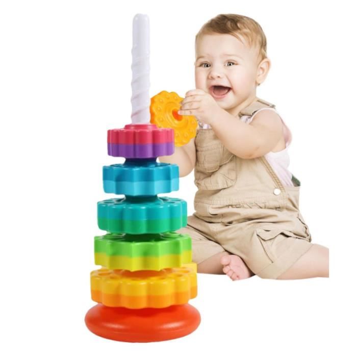 Tour arc-en-ciel rotative pour bébé, Puzzle à empiler Montessori, jouets éducatifs de sécurité pour enfants, cadeaux de noël et d'anniversaire