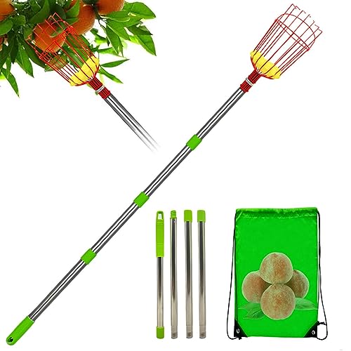 Yesbon Ramasse Noix avec Manche TéLescopique, Cueille Fruit avec 2-7m Manche Telescopique, Lightweight Stainless Steel Connecting Pole, pour Pommes, Oranges, Citrons, Poires,7m/23ft