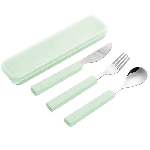 VANRA Lot de 3 ustensiles pour enfants en acier inoxydable 18/10 - Couverts pour enfants - Couteau, cuillère, fourchette - Avec étui de transport - Pour boîte à déjeuner - Vert