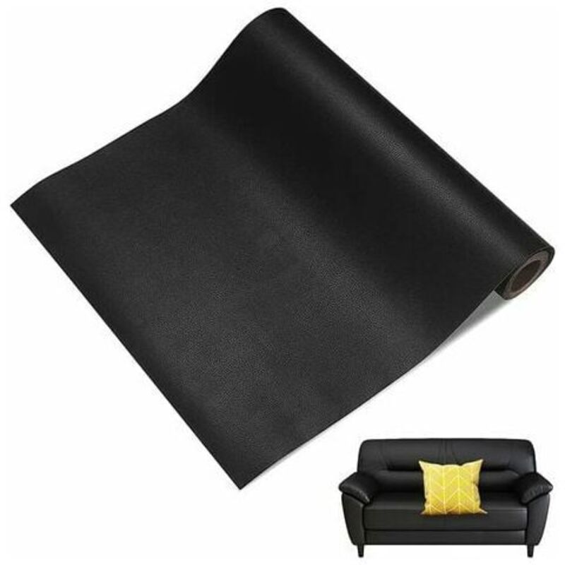Kit de réparation cuir autocollant noir 150 x 40 cm - Rouleau adhésif réparation cuir PU - pour canapés, vestes, sacs à main, sièges auto, meubles