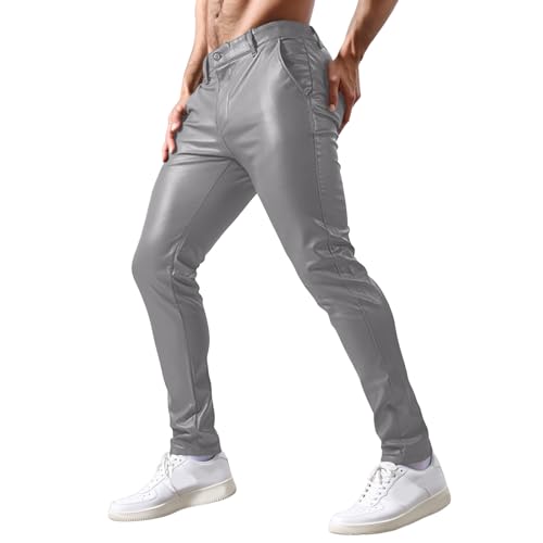 Pantalon Cuir Homme Vintage- Pantalon Disco Homme Chic Et Élégant Couleur Unie Moulant Décontracté De Travail Pants Extérieur Polyvalent Leggings pour Carnaval Fête
