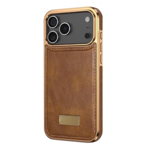 Générique Étui en Cuir for IPhone 17/17 Air/17 Pro/17 Pro Max, Bord plaqué, Motif de Cire d'huile rétro, étui Antichoc, Housse de Protection magnétique(Brown,17 Pro)