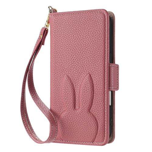 Étui en Cuir pour IPhone 17/17 Pro/17 Air/17 Pro Max, Étui Portefeuille À Rabat avec Motif Lapin Mignon Et Dragonne pour Une Protection Optimale Contre Les Chocs,17,Red