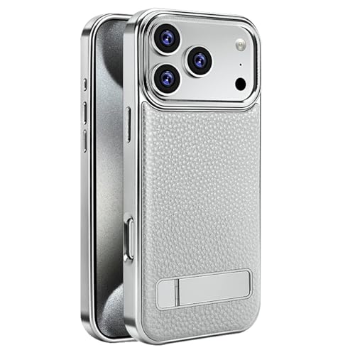 Générique Étui en Cuir for IPhone 17 Pro/17 Pro Max, étui de Luxe Mince galvanisé, Coque de Protection Antichoc for Appareil Photo(Gray,17 Pro)
