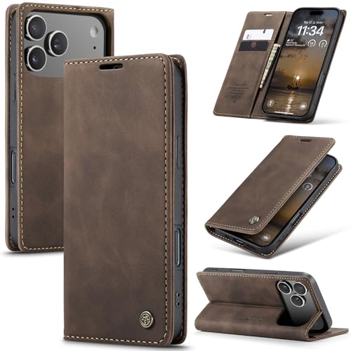 Monweicz Coque pour iPhone17 Pro Clapet Case en Cuir Pochette Protection Portefeuille Rabat Etui Premium Housse Porte Carte Magnétique Étui pour iPhone17 Pro, Café
