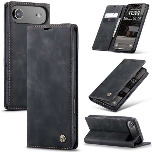 Monweicz Coque pour iPhone17 Clapet Case en Cuir Pochette Protection Portefeuille Rabat Etui Premium Housse Porte Carte Magnétique Étui pour iPhone17, Noir