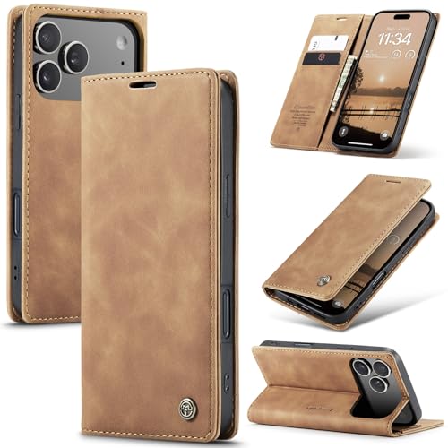 Monweicz Coque pour iPhone17 Pro Clapet Case en Cuir Pochette Protection Portefeuille Rabat Etui Premium Housse Porte Carte Magnétique Étui pour iPhone17 Pro, Brun