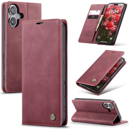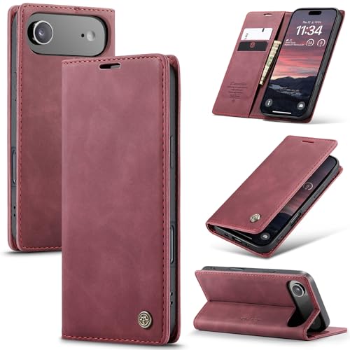 Monweicz Coque pour iPhone17 Clapet Case en Cuir Pochette Protection Portefeuille Rabat Etui Premium Housse Porte Carte Magnétique Étui pour iPhone17, Vin Rouge