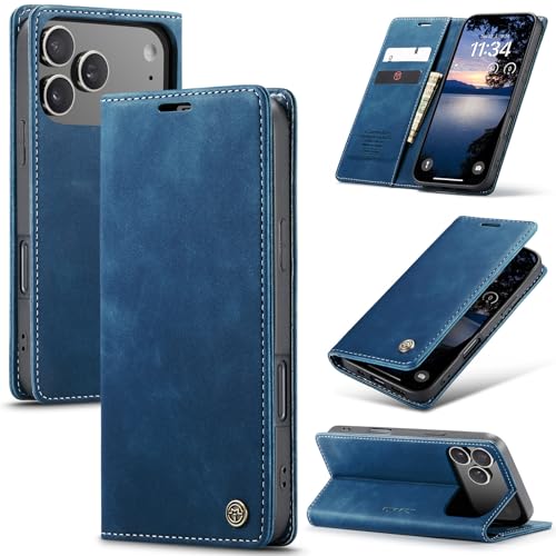 Monweicz Coque pour iPhone17 Pro Clapet Case en Cuir Pochette Protection Portefeuille Rabat Etui Premium Housse Porte Carte Magnétique Étui pour iPhone17 Pro, Bleu