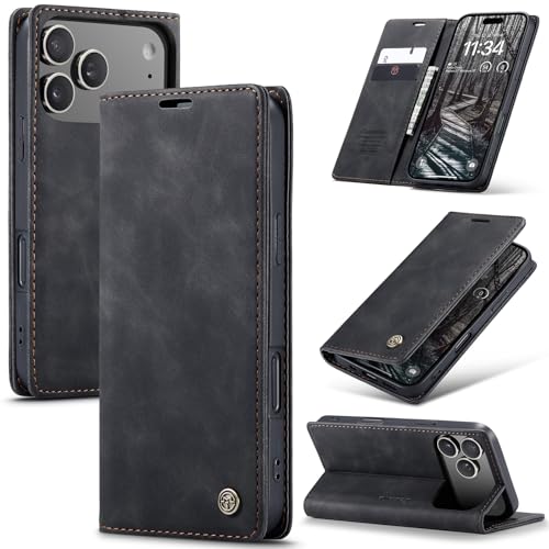 Monweicz Coque pour iPhone17 Pro Clapet Case en Cuir Pochette Protection Portefeuille Rabat Etui Premium Housse Porte Carte Magnétique Étui pour iPhone17 Pro, Noir