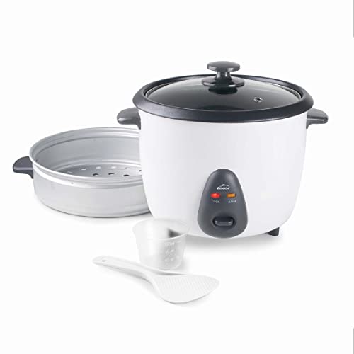 Reishunger Mini Auto Cuiseur Riz (rice cooker) Japonais et Cuiseur Vapeur Blanc avec la Fonction de Maintien au Chaud et Bol en Céramique, dont Cuillère et Tasse à Mesurer – 0.6 l pour 1-3 personnes
