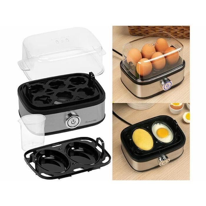 Cuiseur à œuf - ROSENSTEIN & SOHNE - 2 en 1 - Cuit jusquà 6 œufs - Acier inoxydable - Compact